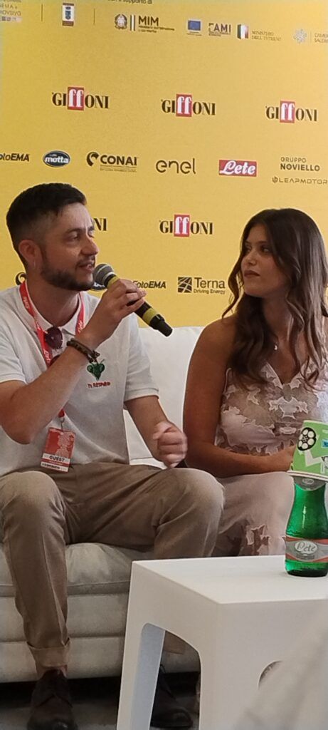 Appena arrivati nella welcome lounge, ci ha accolti l’abbraccio caloroso di un amico di Ferrara, Stefano Muroni, che collabora da anni con Giffoni e—colpo di scena!—era proprio lui uno dei moderatori dello slot dedicato al nostro corto.
