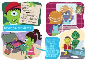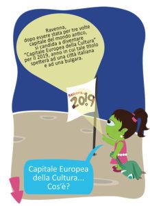 Mappa a fumetti realizzata per CNA e Ravenna2019, realizzato per raccontare ai bambini la candidatura di Ravenna a Capitale Europea della Cultura 2019; per ulteriori informazioni clicca qui.