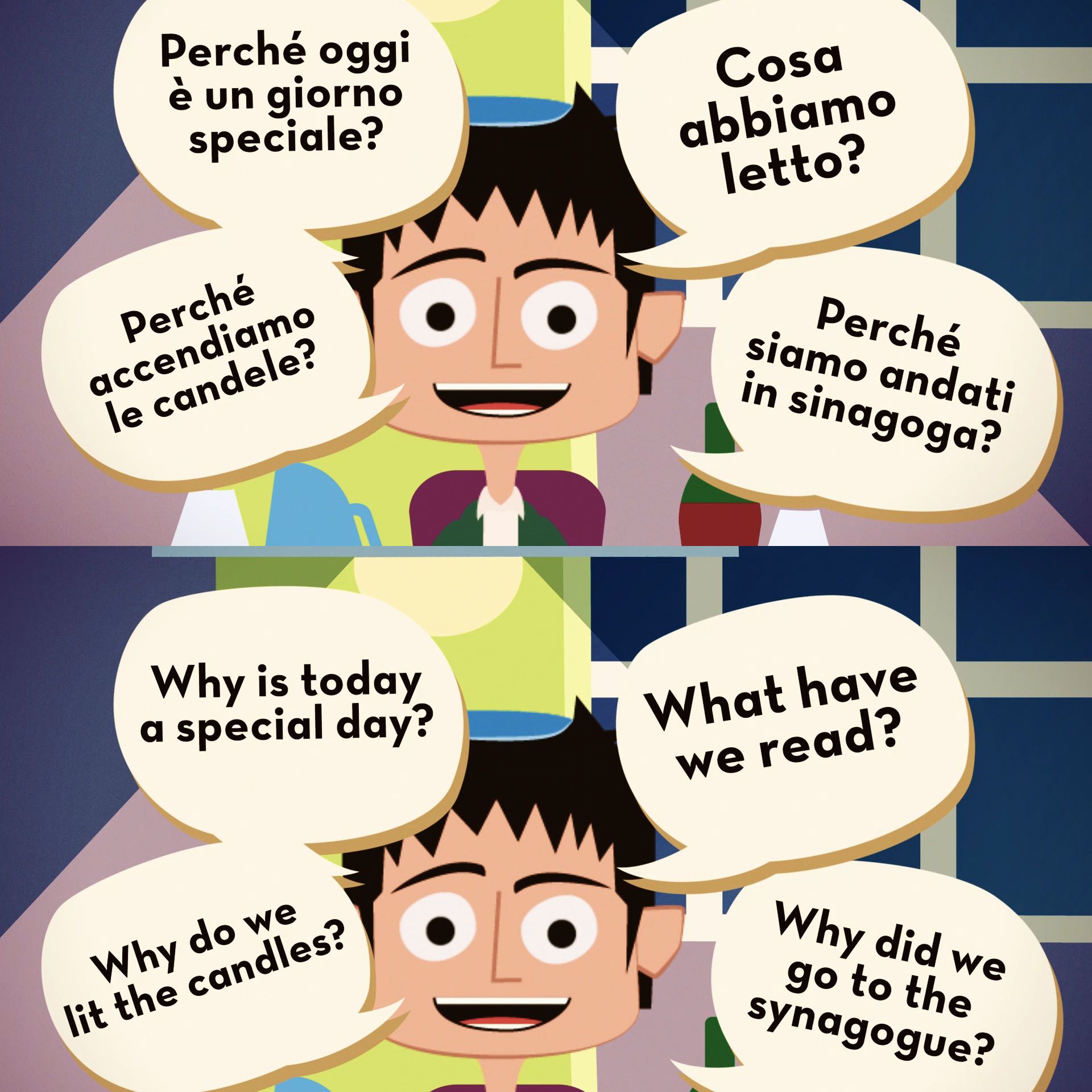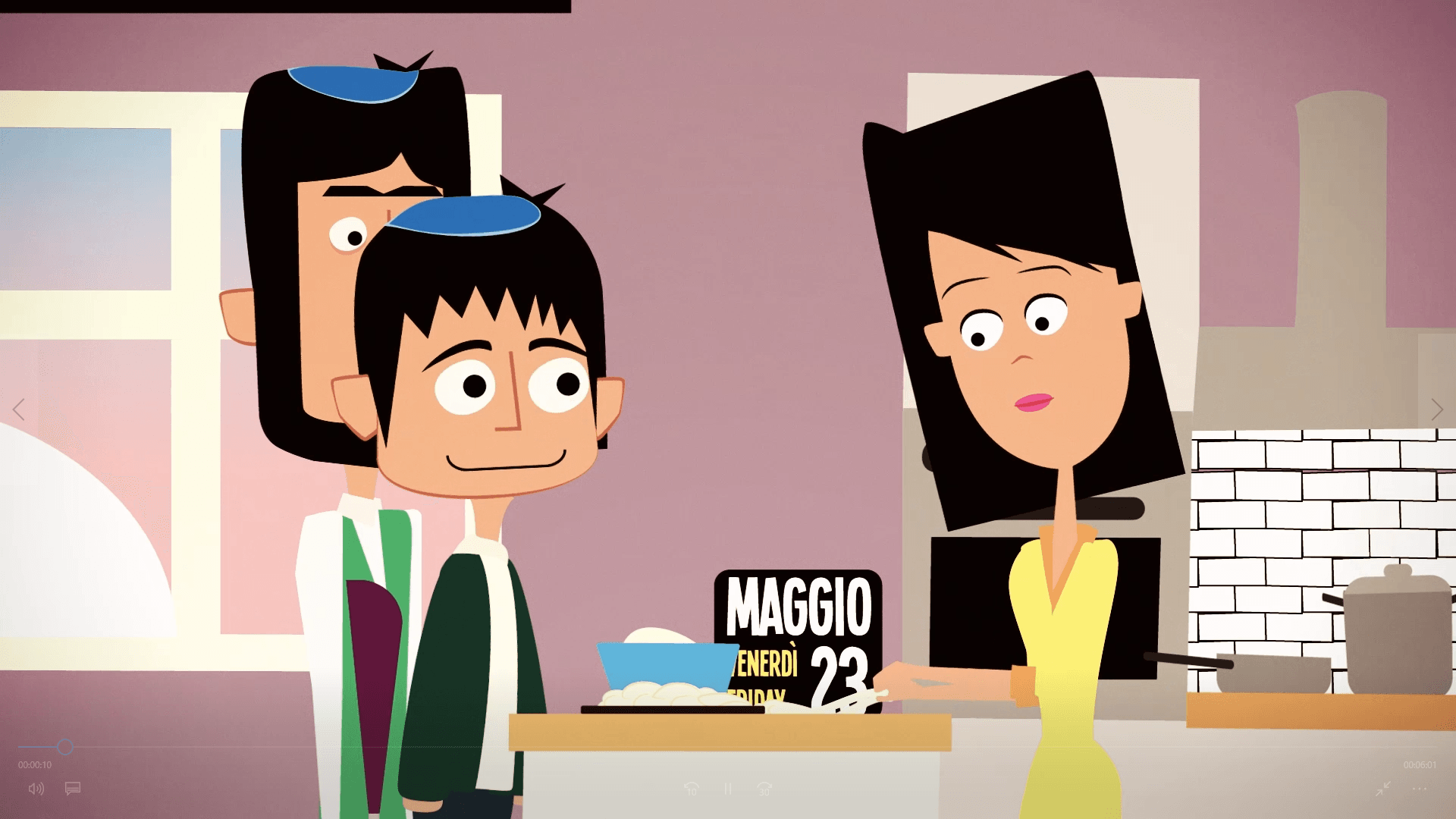 Cartone animato e illustrazioni realizzate per il percorso interattivo dedicato ai bambini all’interno della mostra Torah fonte di vita