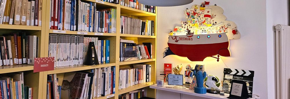 Si passa dalle stupende illustrazioni di Gustave Doré in una singolare edizione della Divina Commedia, alla versione integrale di “Little Nemo” alto la bellezza di 38 cm. Nella sezione “Viaggiando” si può andare alla scoperta della magica e misteriosa Venezia in compagnia di Corto Maltese. Degne di nota anche le tre antologie “Graphicar”, “Humourcar” e “Comicar” del critico di fumetti italiano Claudio Bertieri. Nella sezione dedicata al cinema, grazie ai testi editi da Richard Anobile è possibile rivivere fotogramma dopo fotogramma i big del cinema classico come: “Casablanca”, “Frankenstein”, “Psycho”, “Alien”. Decisamente ben fornita anche la sezione dedicata ai ragazzi, tra cui spicca per simpatica ed irriverenza la collana Salani con le sue “brutte scienze”, “brutta storia”, “brutta geografia” e via dicendo, che rendono lo studio davvero molto più brut… ehm bello!!!